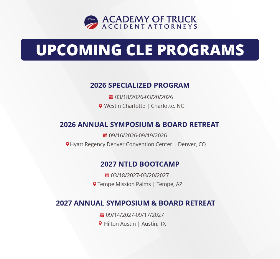 Every big trucking case comes down to a moment of fold or fight. If you're going to fold, no instruction is needed. But, if you're going to fight, everything you need to know and just about everyone you need to know can be found inside this website, and through ATAA membership. It's that significant.